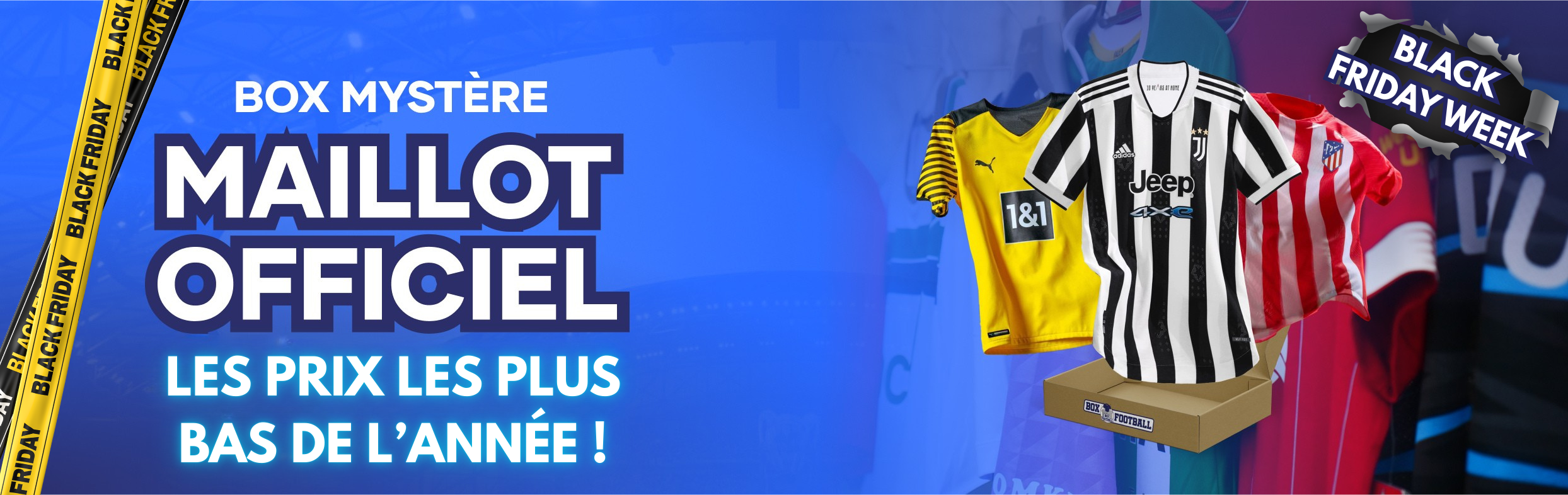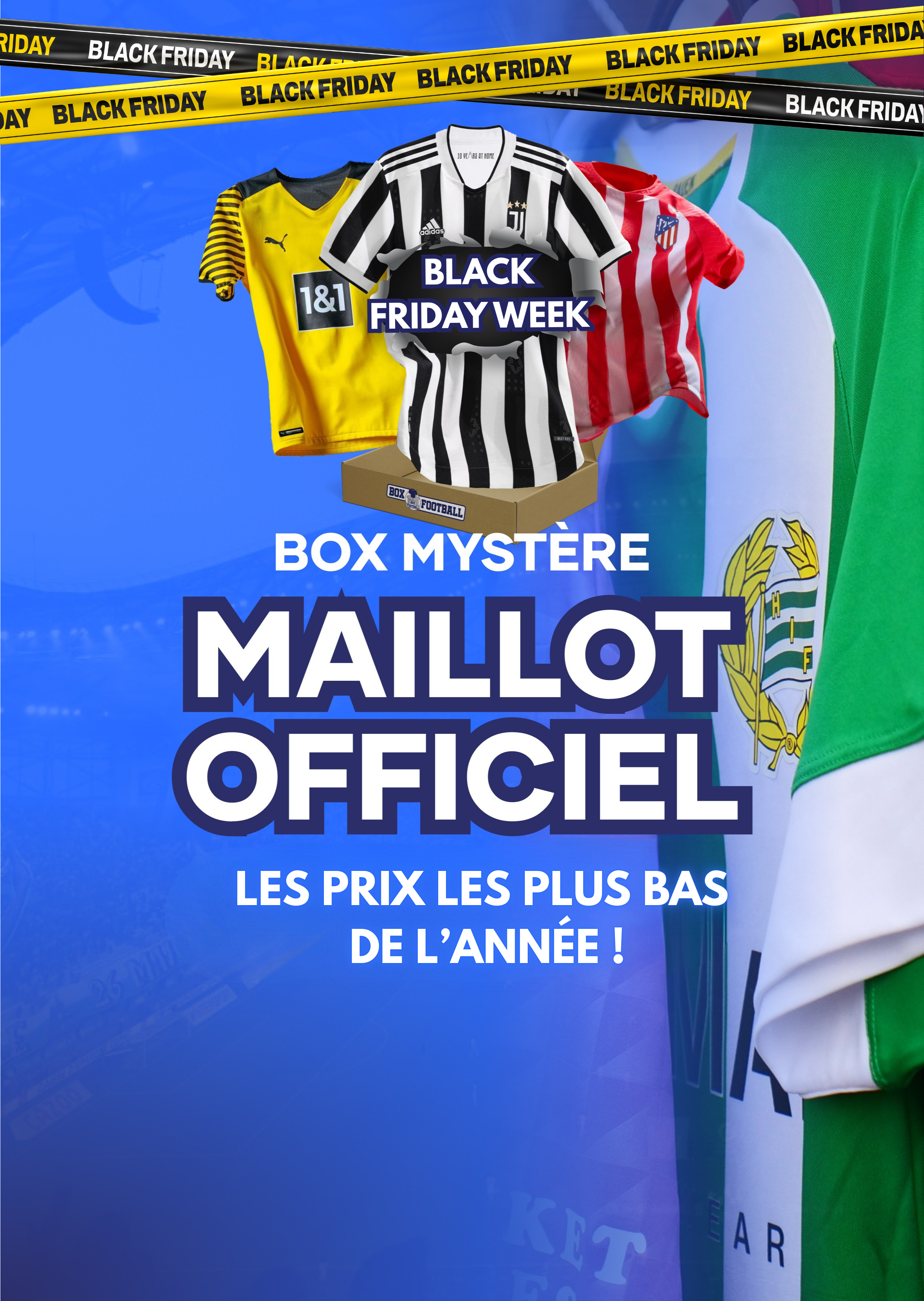 Découvre les offres Black Friday Box Football 2025 ! La box mystère de maillot officiel, l’idée cadeau parfaite pour les fans de foot.